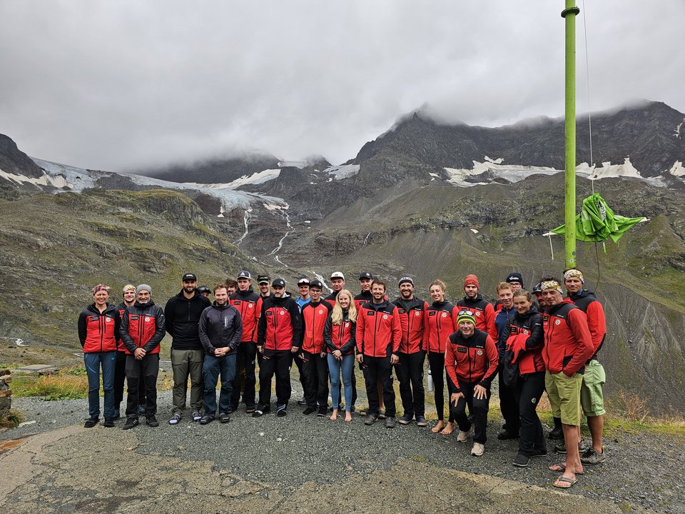 Am Samstag ging es in den einzelnen Gruppen, bei besten Wetterbedingungen, blauem wolkenlosem Himmel und strahlendem Sonnenschein auf den Ochsentaler- und Vermunt Gletscher. Von Gehtechniken im Eis über Spaltenbergung bis hin zu Seilmanövern- das gesamte Team hat in den Tagen auf dem Gletscher gezeigt, was es bedeutet, am Berg sicher unterwegs zu sein. Nach einem langen und lehrreichen Tag am Gletscher ging es zurück in die Hütte, wo wir bestens versorgt wurden.
