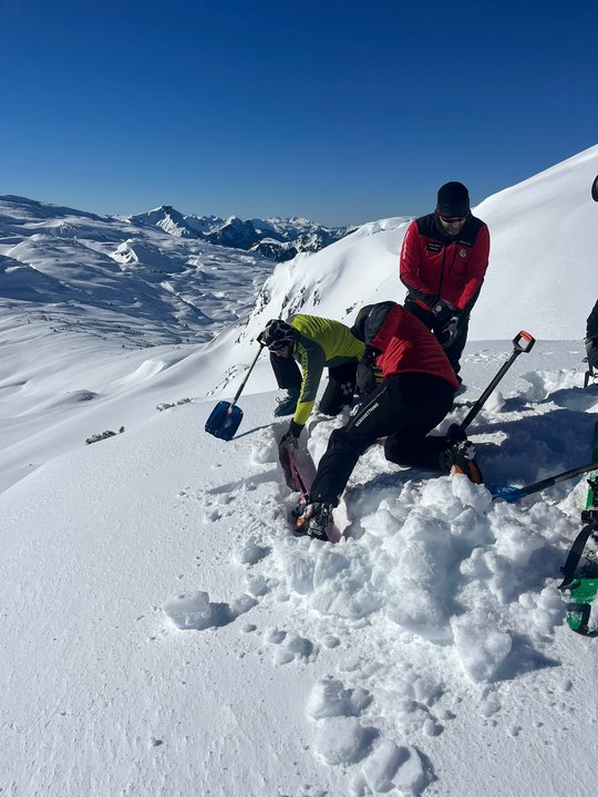 Auch am Sonntag war der Terminplan straff. Um 8:00 Uhr starteten die Gruppen in das Übungsgebiet am Ifen. Dort wurde das bereits erlernte Wissen nochmals vertieft. Um 12:00 Uhr starteten wir Pünktlich mit der Lawineneinsatzübung. Die AnwärterInnen bewältigten das Übungsszenario mit Bravour. Nach der anschließenden Übungsnachbesprechung ging es zu unserem wohlverdienten Abschlussessen in die Ifenhütte. Nach dem Essen konnten wir den Kurs ohne besondere Vorkommnisse und mit äußerst motivierten und top vorbereiteten AnwärterInnen beenden.