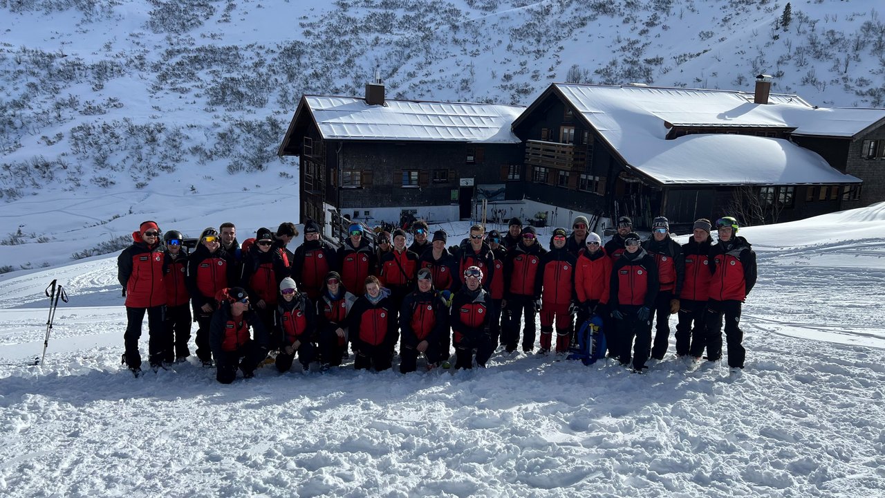 Der Winter-Basiskurs fand vom 24.01.2025 bis zum 26.01.2025 im Schwarzwassertal des Kleinwalsertales statt. Insgesamt 23 Anwärter, 6 Ausbilder und 3 Co-Ausbilder aus dem ganzen Land haben sich am Freitagnachmittag am Parkplatz der Auenhütte gesammelt und die Gruppen für die kommenden Tage eingeteilt.