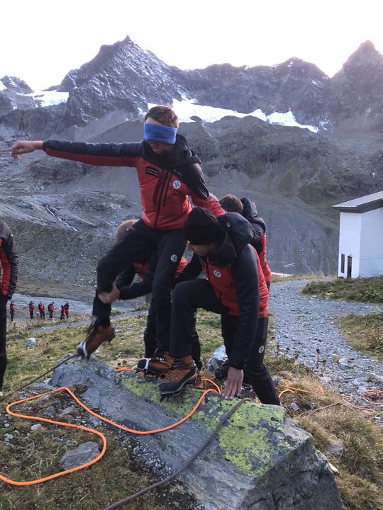 Am Abend stand dann noch ein kleiner Wettbewerb auf dem Programm: Geschicklichkeit mit Steigeisen und Handschuhen. Gar nicht so leicht, wie es aussieht – aber der Kampfgeist war trotz voller Bäuche definitiv geweckt. So gaben wir alles und die wohlverdienten Sieger durften sich über kleine Berg Goodies freuen. Natürlich darf auch der gemütliche Teil nicht fehlen - bei Jass und Getränken geht der Tag wunderbar zu Ende.