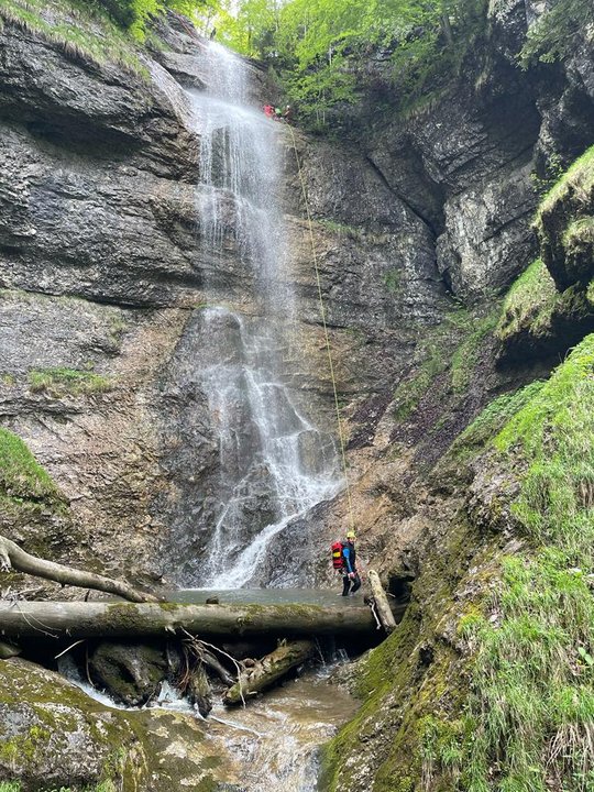 Bei frühlingshaftem Wetter fand vom 20.05-21.05 der Canyoning Kurs im Bregenzerwald statt. Am Samstagmorgen wurden die 19 top motivierten TeilnehmerInnen der Bergrettung sowie 2 Kollegen von der Wasserrettung beim Bergrettungsheim in Mellau vom Kursleiter begrüßt.