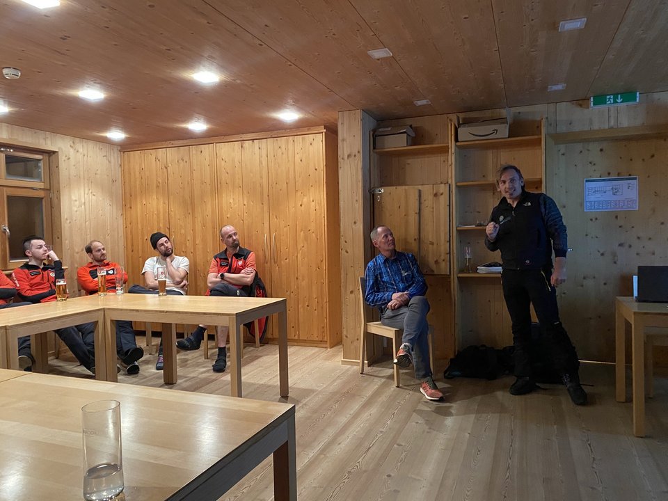 Am Nachmittag erreichten die Gruppen die gemütliche Lindauer Hütte. Nach der Zimmervergabe stand die Vorbereitung der Themenpräsentationen auf dem Programm: Recco, Lawineneinsatz, Stop or Go und Schneekunde. Die Präsentationen am Abend boten spannende Einblicke und legten den Grundstein für angeregte Diskussionen.